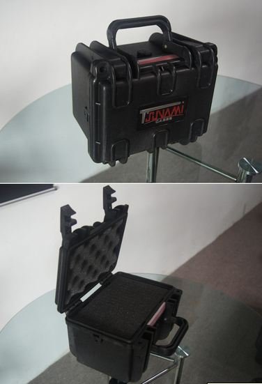 TSUN0001-51272244 521X278X190.8MM TSUNAMI CASE WITH FOAM Parameters:   External DIM.(LxWxD): 557*348*248mm Internal DIM.(LxWxD): 521*278*190.8mm Material: PP/ABS Weight(Kg): 7.6 Volume(L): 28.6 Buoyancy MAX.(Kg): 27.4 Wheels: Without Colors: Black/Orange/Green Range Temperature: -40℃~90℃ Description: Professionally designed and developed strictly complying with the highest safety protection standard.Patented invented material with a better weather ability and a... Cases (Instrument Storage)