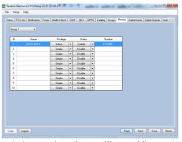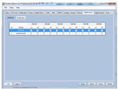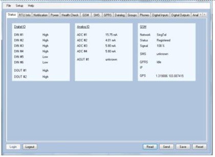 Introduction The RTU201 was designed for low cost large quantities deployment opportunity with factory installed serial interfaces (RS232 (default) /485) that can interface to Metering Devices or sensors with either RS2323C or RS485 interface. Up to 8 dry contact input including counting devices and 2 analog input can be supported. RTU201 has built in datalogging capability for 16,000 points allowing you a historic log of events, input activation, or as a datalogging on timed interval basis. The Standard Model RTU201 has a FCC/CE approved Quad Band GSM/GPRS Modules (class 10). GPRS can operate as client (remote terminal) or as a GPRS Server (customed firmware). Modbus TCP is supported for GPRS operation enable this unit with work with any SCADA Software RTU201 is small in size and DIN Rail Mount (72mmW x 88mmH x 60mmD) with pluggable screw terminal to ease panel installation and field replacement. Large datalogging memory of 4MBYTES allows 100,000 points to be logged and the datalog can be downloaded in CSV format via the high speed USB. The datalog memory is semiconductor flash memory requires no battery backup. The Backlit Graphic LCD display essential parameters including RTU Name, GSM Number, Network Status and Signal Strength, System DateTime, IO status and Sending SMS information. This ease the field maintenance without having to connect Laptop or sending SMS to verify operation even if the GSM device is not register to Network Built in RS232C Interface (default to System Console Terminal by default) can be optionally factory configure to RS485 that can connects to Metering Devices, PLCs, Soanar, Water Quality Sensors, Hydrostatic Level Sensor, Pressure Sensors or Weather sensors. Contact us for custom sensor interfaces to your sensors or logger instruments that allows the RTU201 to be used as a remote wireless gateway or SMS alert unit It has 8 protected Dry Contact Input, and 2 Analog Input (4-20mA/(default) or 0-5V) with 12 bit ADC resolution The 2 Analog input allows accepting of analog sensors readings such as from Temperature/Humidity, Level Sensors, Water Qualties, Weather Sensors etc. NTC Thermistor 10K sensor is supported optional with external sensor for measuring temperature from 0 to 100degC Built in USB Interface with HID with a free user friendly Windows Configuration software allows the RTU Alert Unit to be setup easily even by novice users. This eliminate cumbersome Serial port, drivers as well as IP Setup/Security Issues. Free User Setup program supports WINXP, WIN7 (32bit and 64bit) as well as WIN8 (32bit and 64bit) RTU201 Specification: 5 Digital Input (Dry Contact, Protected) Summary Of Features Powered by 32bit ARM Risc Controller End User Alert Mode: SMS (up to 20 phone numbers) Support up to 5 Level of Escalations. Power Supply: DC 7V to 30VDC. PC Interface: USB HID Interface (no driver installation requires) Serial Interface: 1 x RS232C (factory installed option for RS485) Non Volatile Logger Memory: Total of 4MByte onboard datalogger memory Number Of Handphone and Emails: 2 Group of 10 phone each SMS Escalation: Supported (up to 5 levels of SMS Repeat) SCADA HMI: TSCADA Windows and Web Base Interface. via GPRS, or Text and PDU SMS Format. APPLICATION AREA Computer Data Center: Monitoring Computer, UPS, PC Server, Water Leak, FM200, Temperature/Humidity. SCADA System (Water Level, Flood Monitoring, Water Quality (PH, DO, Turbidity, Temp), VOC, TOC and other kind of Sensor Measurement Weather Stations (Raing Gauge), Slope Movement. Remote Event Alarm Notification. (UPS, Cold Room, Refrigeration, Electrical, Breaker, Solar Panel, Security Panel, Fire Alarm Panel, Lift Monitoring). SMS/EMAIL/GPRS/IP ALERT AND MONITORING MODE RTU201 support dual operating mode : a) Direct Alert SMS Message Send to User Handphone. b) Server Mode: Send to Testech TSCADA CMS Sotware In logging mode or interface to Metering devices, the RTU201 regularly read or poll data and send to server using either compressed PDU format SMS, or using GPRS for larger payload packet. This means that with our RTU you are assure of the best in both world of operating in standalone mode, Server Mode, and BOTH SIMULTANEOUS User+Server Mode by creating different Phone/IP group on the RTU201 The important implication is that our RTU is scalable, allowing customer to gradually scaled up the unit of deployment from standalone base to server base. SMS COMMAND FOR REMOTE SETUP User can send SMS (which has to be validated for a existing phone number in the RTU201) can be send to querrie or activate the IO Control, as well as checking the system status including Telco signal strength, status of GPRS Connection, turn ON/ Turn off the Digital Output etc. SMS Command supports includes allowing remote authorised Handphone to configure, setup, add/edit/enable/disable/delete handphone numbers etc. GROUP CONFIGURATION AND ASSIGNMENT Up to 2 Group of 10 Phone Each (that is total of 20 GSM Phone Number) can be setup on the RTU (via RS232C or Keypad) Group can be set to Server Mode (requires TSCADA HMI Software) or User Mode (diret SMS Message Alert to user Mobile Phone) Group can be Enable or Disable. Inputs assignment can be assigned to each Group. For example if the RTU are connected to mechanical equipments, HVAC and electrical equipment etc and there are different team of maintenance responsible for each category of equipments, you can then alert ONLY the team that are responsible for the particular input that requires service attention when a alarm is send out via SMS Each group and each individual phone can be individually enable and disable. Inputs can be assigned to different group. PHONE CONFIGURATION AND ASSIGNMENT Total of 20 GSM Phone number can be created in the RTU201 RTU, by assigning up to 10 Phone Max to Each group (max 2 Groups). Each Phone can be assign two different privilege mode Supervisor Phone: Supervisor Phone can configure the unit and send control command to the unit (Turn Alarm ON/OFF, swit