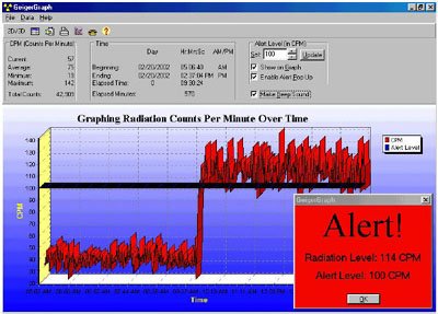 You can configure the program so that a Radiation Alert executes a computer program or batch file, and/or sets voltage to another serial port on the computer to trigger a relay switch that stops a machine, for instance. |