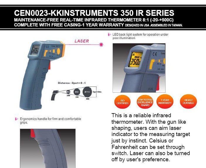 CEN0023-KKINSTRUMENTS 350V2 SERIES 500c MAINTENANCE-FREE Standard Infrared Thermometer (D:S=8:1/Laser)